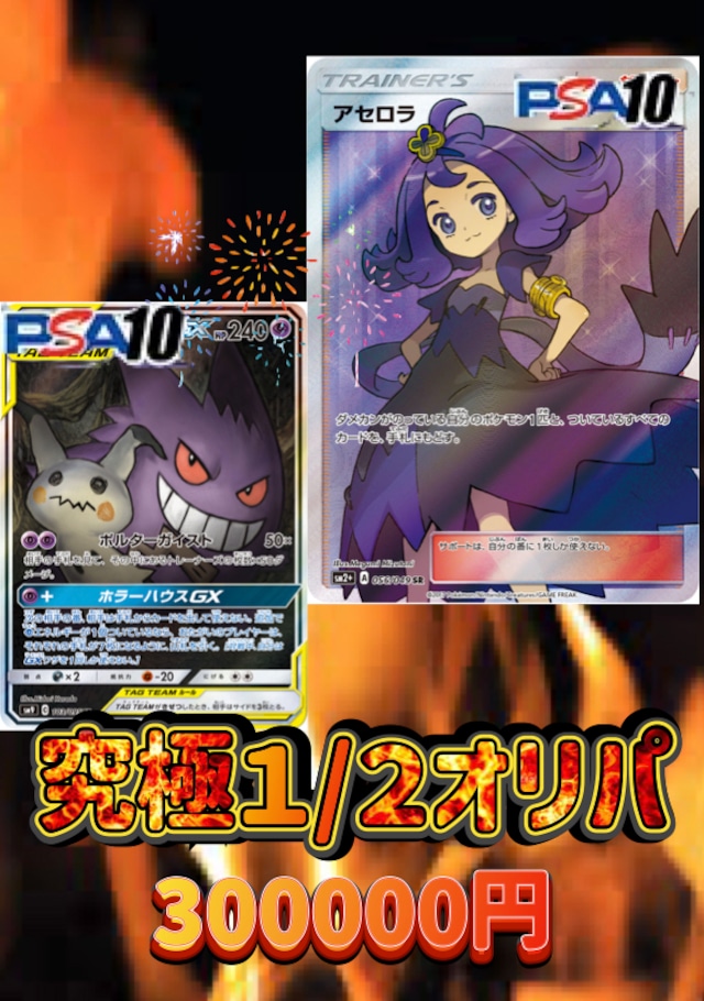 ❤️究極1/2オリパ❤️ ☆一口600000円(税込) ☆送料一律600円(梱包材含め) ⭐︎全2口 豪華当たり一覧 《大当たり》 PSA10 ゲンガー&ミミッキュ SAとアセロラSR 是非手に取ってみてくださいね♪ 丁寧かつ迅速な対応を心掛けています。 カードが傷つかないように梱包して発送させていただきます。 【お願いと注意事項】 下記に記載している事を御理解、御了承の上、 購入頂ける方のみ、ご購入お願いいたします。 ※比較的状態の良い物を使用しておりますが、 中古であることをご了承の上、購入お願い致します。 ※シャッフルの上購入口数分選択するため カードに偏りがある場合がございます。 必ずお目当てのカードを引けるというわけでは ございませんので、ご理解・ご了承の上 購入お願い致します。 ※カードの価値は全て、当店の基準にて判断し、一律当商品の販売価格と同等とさせていただきます。当商品をご購入頂いた方は、注意事項を全て確認し 内容に同意頂いたと判断させていただきます。 ※カードの内容での評価はご遠慮下さい。 ※レギュレーション外のカードが入ってる場合がございます。予めご了承ください。 ※発送後の事故は保証できませんので、ご了承ください。 ※キャンセルはお受け出来ません。 ※総当たり口数1口 ※入金確認後1日〜5日以内に発送致します。