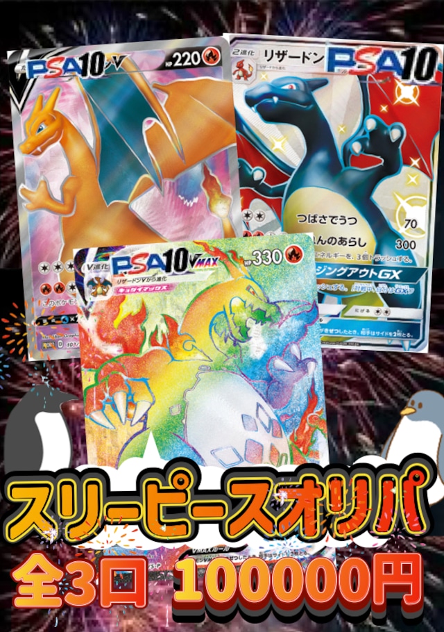 ❤️スリーピースオリパ❤️ ☆一口 100000円(税込) ☆送料一律600円(梱包材含め) ⭐︎全3口 豪華当たり一覧 《大当たり》 PSA10 リザードンV SRとリザードンGX SR PSA10 リザードンVMAX HR 是非手に取ってみてくださいね♪ 丁寧かつ迅速な対応を心掛けています。 カードが傷つかないように梱包して発送させていただきます。 【お願いと注意事項】 下記に記載している事を御理解、御了承の上、 購入頂ける方のみ、ご購入お願いいたします。 ※比較的状態の良い物を使用しておりますが、 中古であることをご了承の上、購入お願い致します。 ※シャッフルの上購入口数分選択するため カードに偏りがある場合がございます。 必ずお目当てのカードを引けるというわけでは ございませんので、ご理解・ご了承の上 購入お願い致します。 ※カードの価値は全て、当店の基準にて判断し、一律当商品の販売価格と同等とさせていただきます。当商品をご購入頂いた方は、注意事項を全て確認し 内容に同意頂いたと判断させていただきます。 ※カードの内容での評価はご遠慮下さい。 ※レギュレーション外のカードが入ってる場合がございます。予めご了承ください。 ※発送後の事故は保証できませんので、ご了承ください。 ※総当たり口数2口ハズレ1口 ※キャンセルはお受け出来ないこともあります。 ※引換券や割引券も含まれます。 ※入金確認後1日〜5日以内に発送致します。